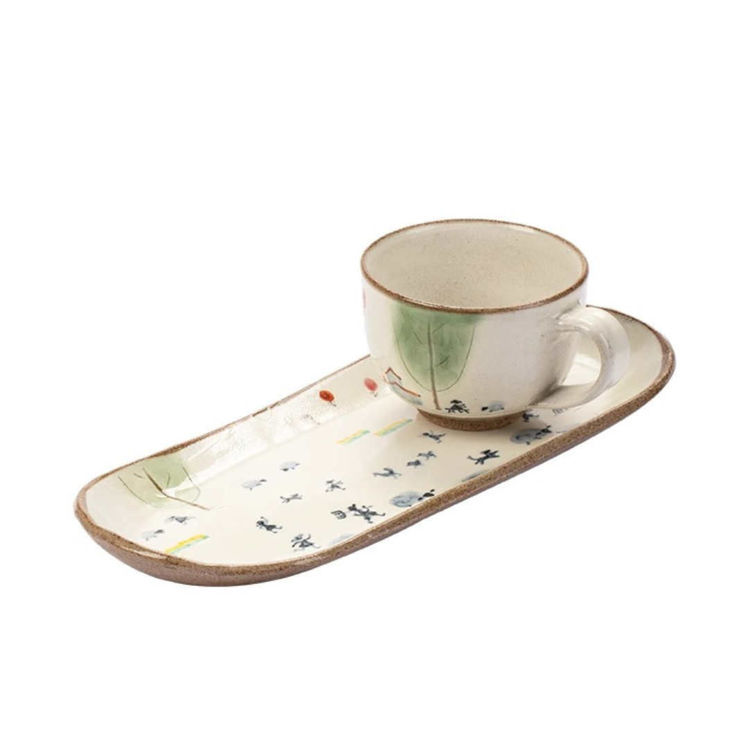This Kasama Ware Hand-Painted Teapot Set beautifully captures the peaceful charm of rural life through soft watercolor-style motifs and warm earthy tones. Crafted by skilled artisans in Japan, the set combines traditional ceramic craftsmanship with practical functionality — ideal for brewing both tea and pour-over coffee.
